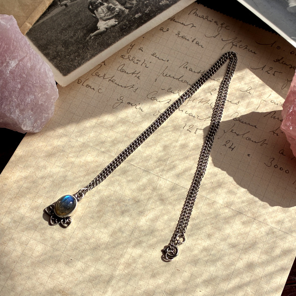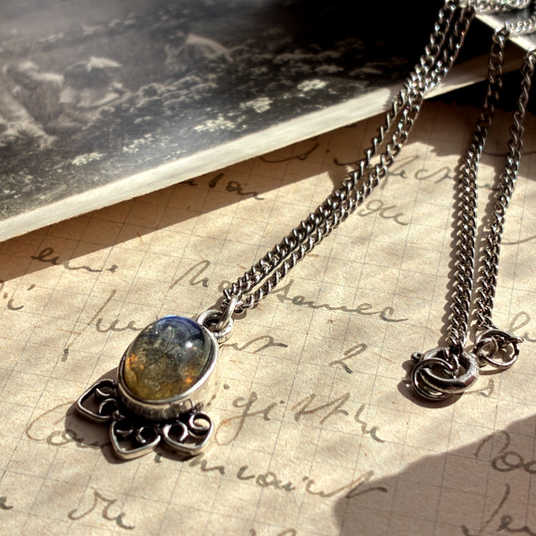 スターリングシルバー ラブラドライト 天然石 アンティークネックレス|月光を宿す神秘の一粒
