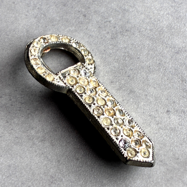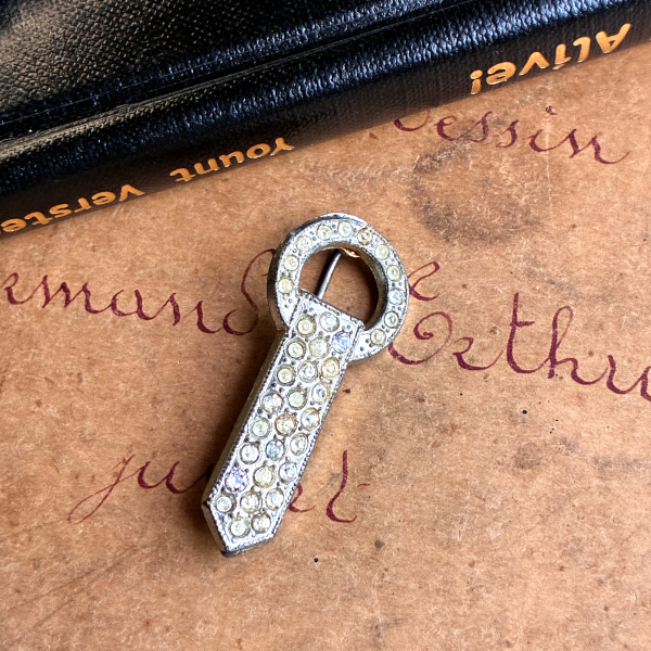 1900〜1920年 英国アンティーク ラインストーンブローチ アールデコ時代 幸運をひらく鍵 [NU1306]