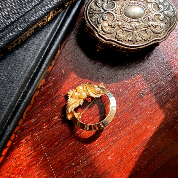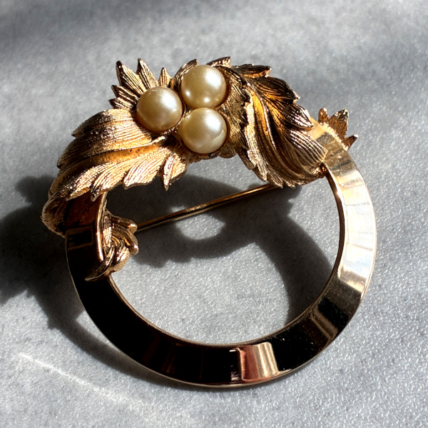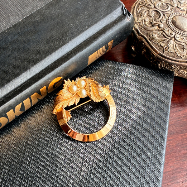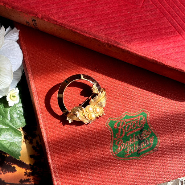 SARAH COVENTRY サラコベントリー ヴィンテージブローチ 花とパールのリース(1960–70s) [NU1520]