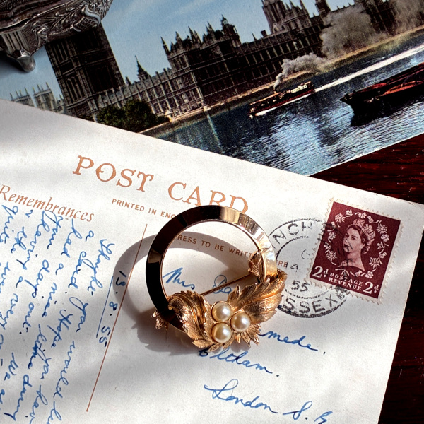 - > SARAH COVENTRY サラコベントリー ヴィンテージブローチ 花とパールのリース(1960–70s)