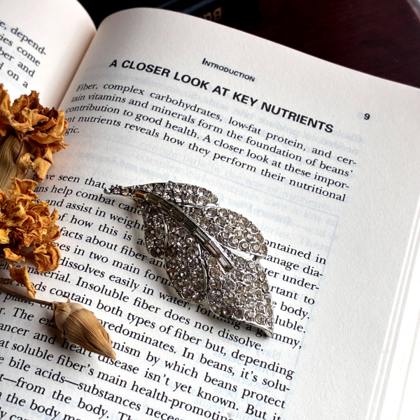 このラインストーンの輝きが、ヴィンテージブローチならではの魅力を引き立てています。