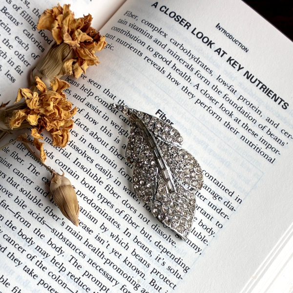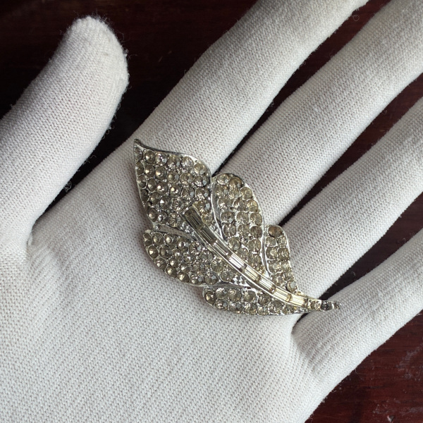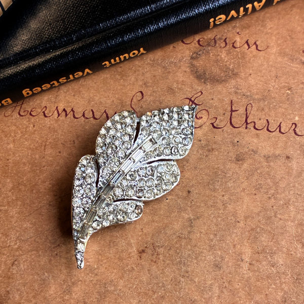 - > イギリス 1950年代 リーフ葉デザイン クリアラインストーン ヴィンテージブローチ