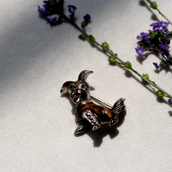 - > 英国 1970年代 ヴィンテージ 小さなテリア犬ブローチ「ちいさな見張り番 」イギリス アクセサリー