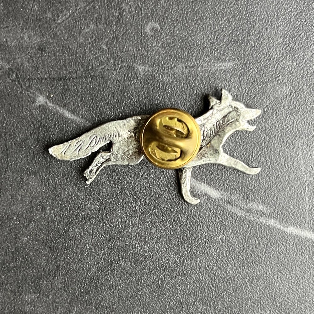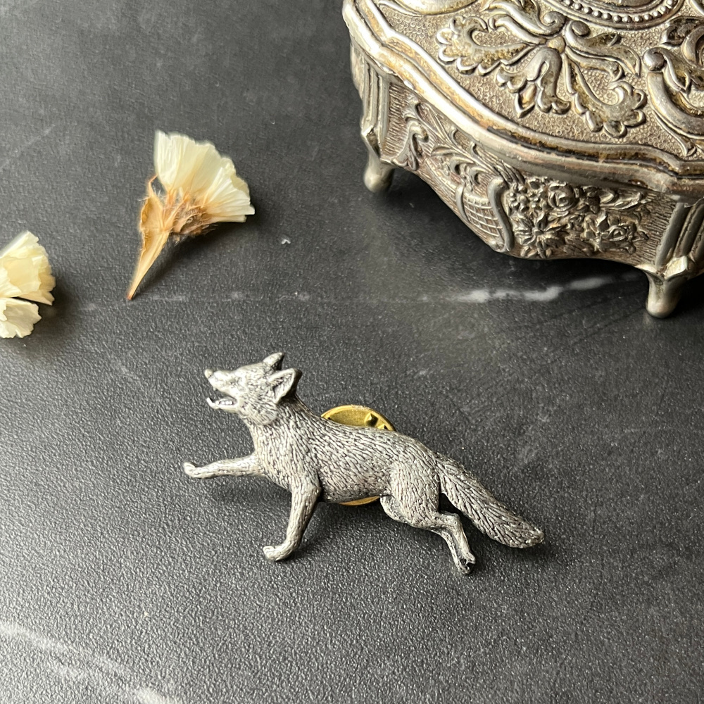 - > 英国ヴィンテージ きつね ピューターピンブローチ「霧の草原を駆け抜ける狐」イギリス製 アンティークアクセサリー