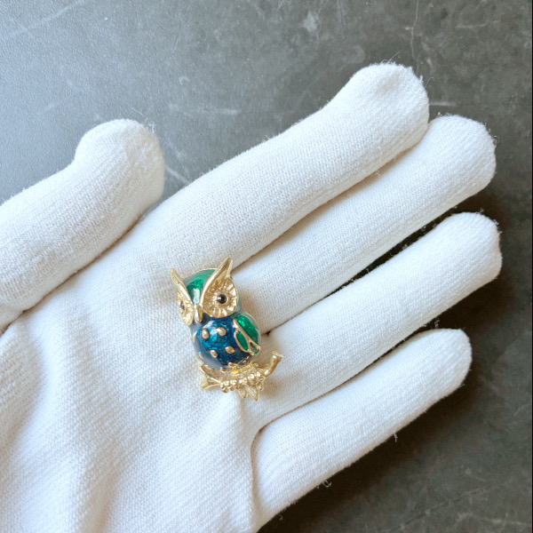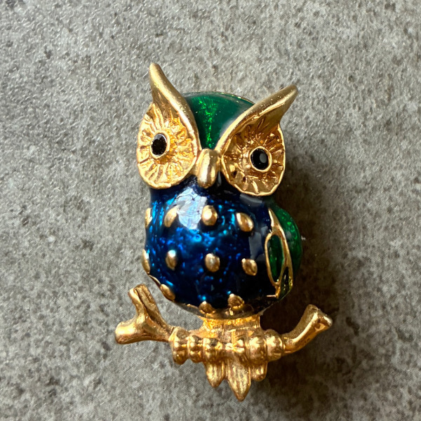 英国 ヴィンテージ フクロウブローチ「知恵と静けさを宿す、森の守り神」イギリスブローチ
