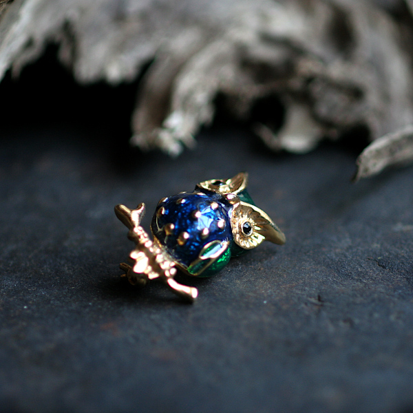 英国 ヴィンテージ フクロウブローチ「知恵と静けさを宿す、森の守り神」イギリスブローチ [EW0624]