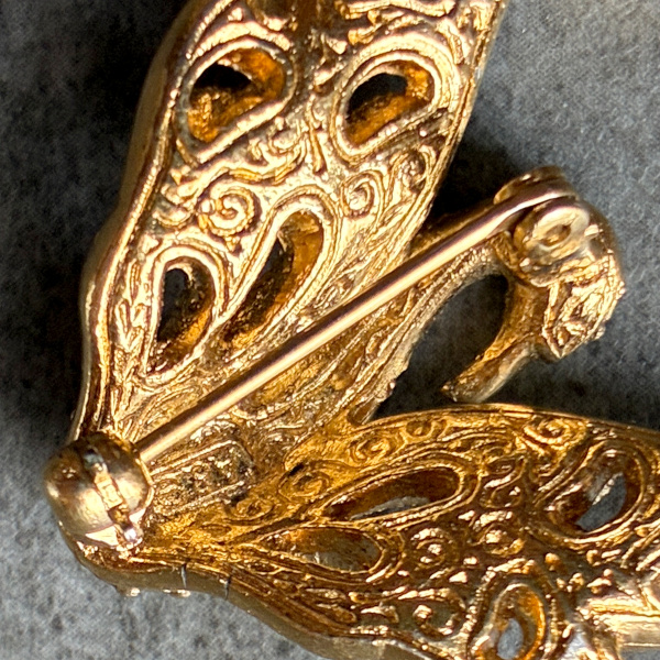 羽根は美しい透かし細工になっており、光の角度によってきらめきが変わるたび、まるで羽ばたこうとするその瞬間の空気まで感じられるよう。