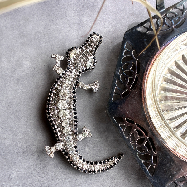 英国 ヴィンテージワニブローチ「威厳と煌めきを纏う輝きの守護者」 [EW0697]