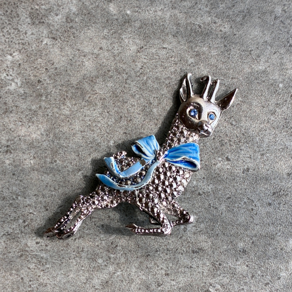 - > 1970年頃 英国 ヴィンテージブローチ 幸運を運ぶ青の鹿