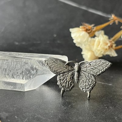 ブルーとグリーンのエナメル彩色が羽に瑞々しい生命力を宿し、クリスタルの煌めきがその翼に星のような光を添えています。