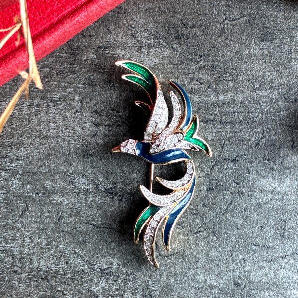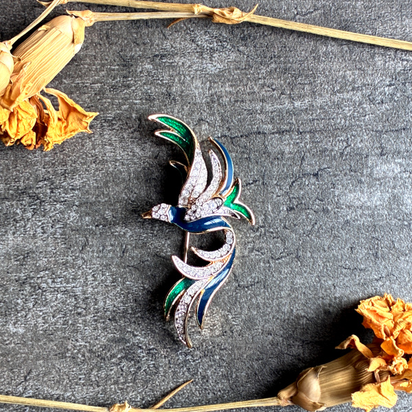 - > 英国ヴィンテージ 鳥ブローチ 希望を運ぶ翡翠の翼