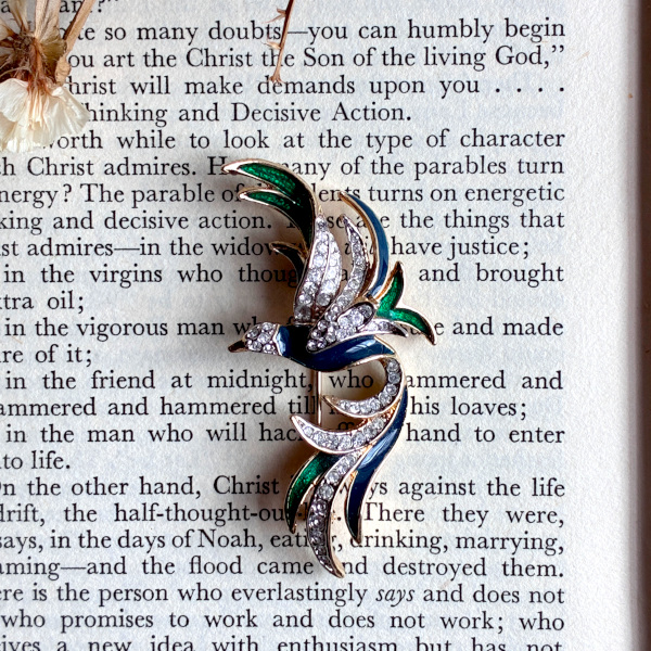 英国ヴィンテージ 鳥ブローチ 希望を運ぶ翡翠の翼 [EW0720]