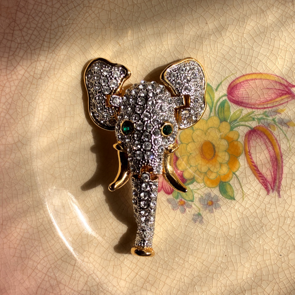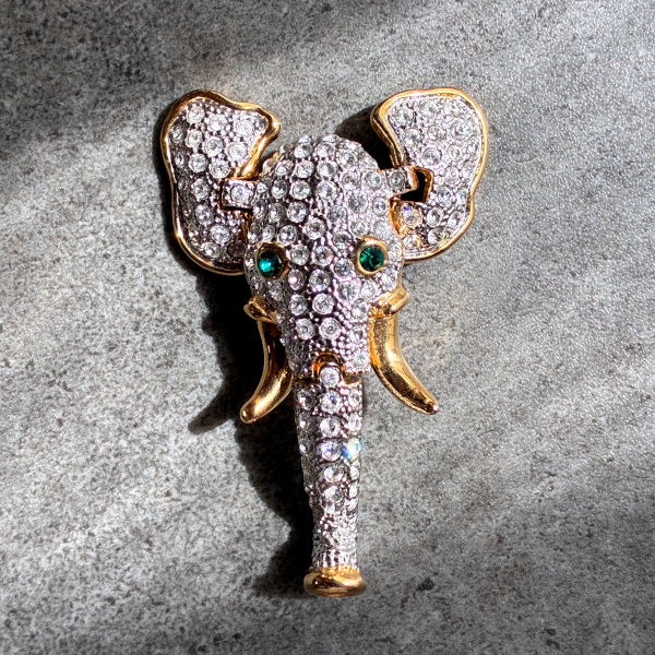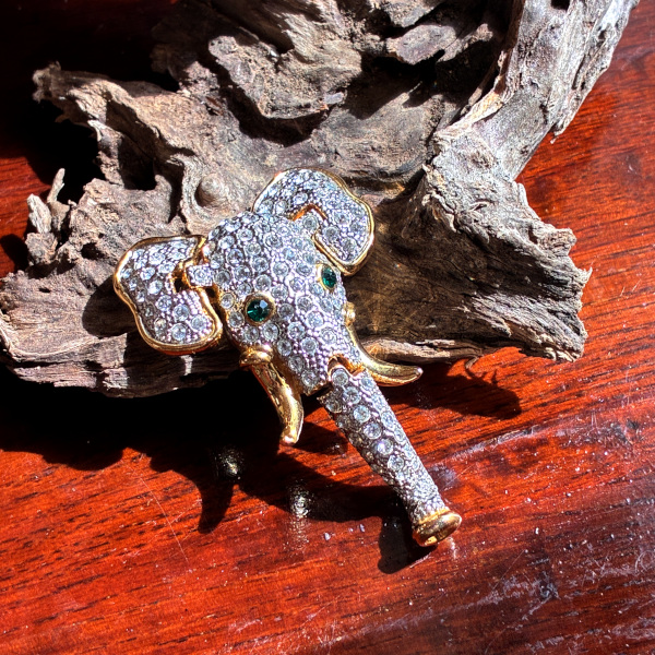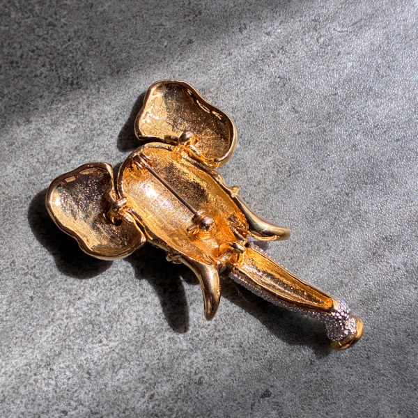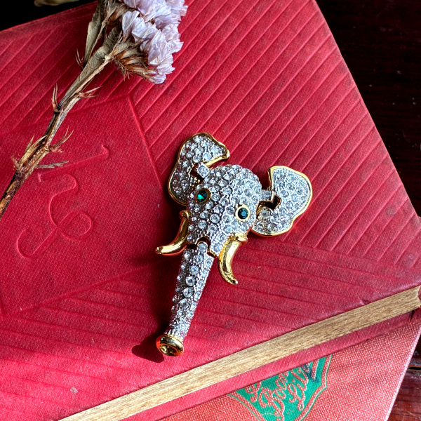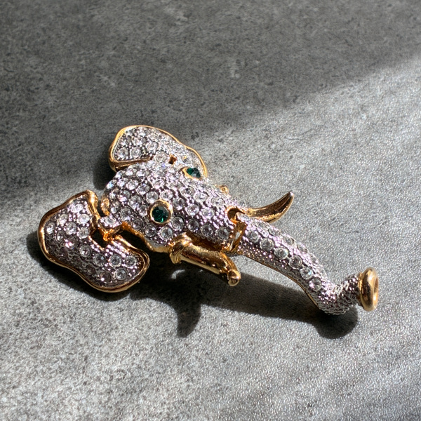 - > 英国ヴィンテージ クリスタル象ブローチ 幸運の鼓動を胸に