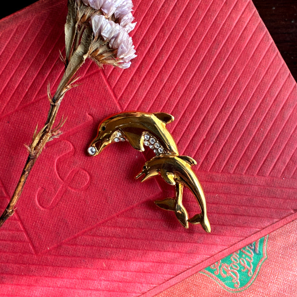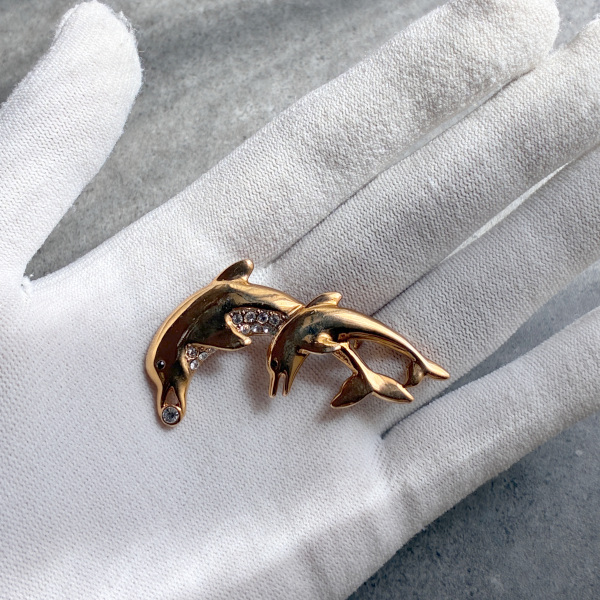 - > 英国ヴィンテージブローチ|親子イルカの絆