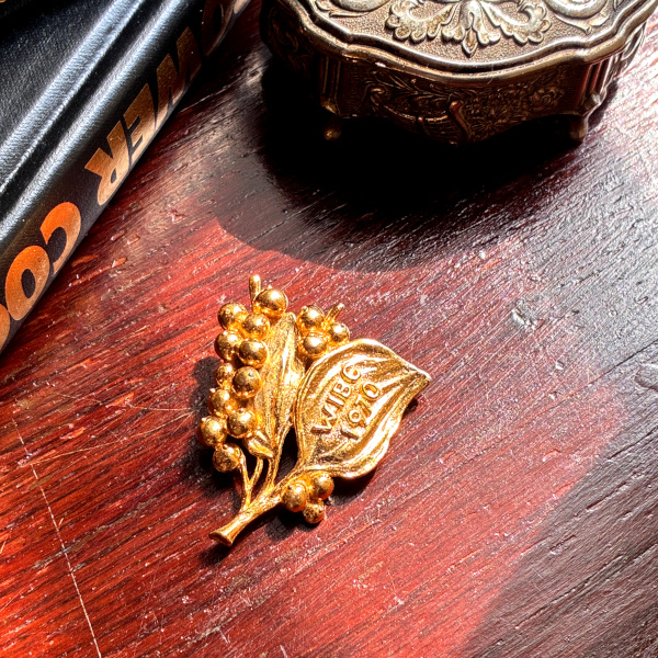 WIBC 1970 実りの葉を纏うゴールドメタルブローチ アメリカ ヴィンテージ