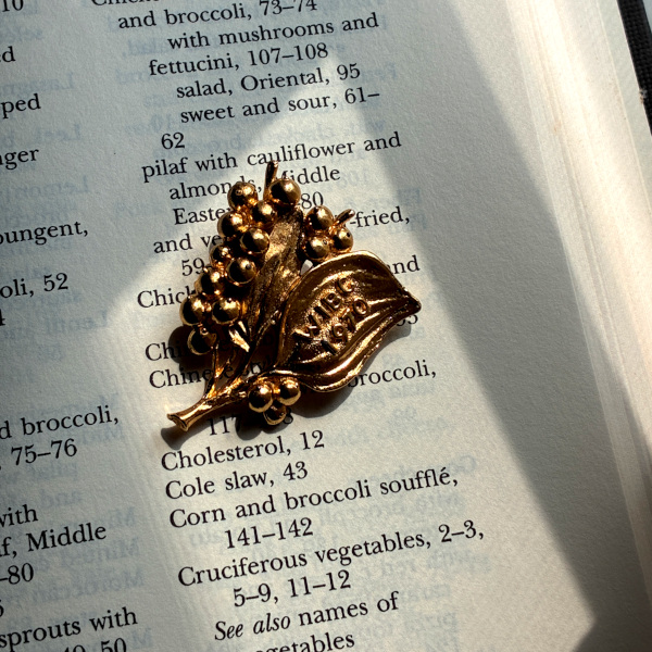 WIBC 1970 実りの葉を纏うゴールドメタルブローチ アメリカ ヴィンテージ [NU1516]