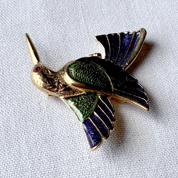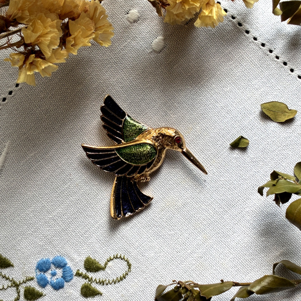 静寂の庭に舞う光──英国ヴィンテージ ハチドリ エナメルブローチ [EW0734]