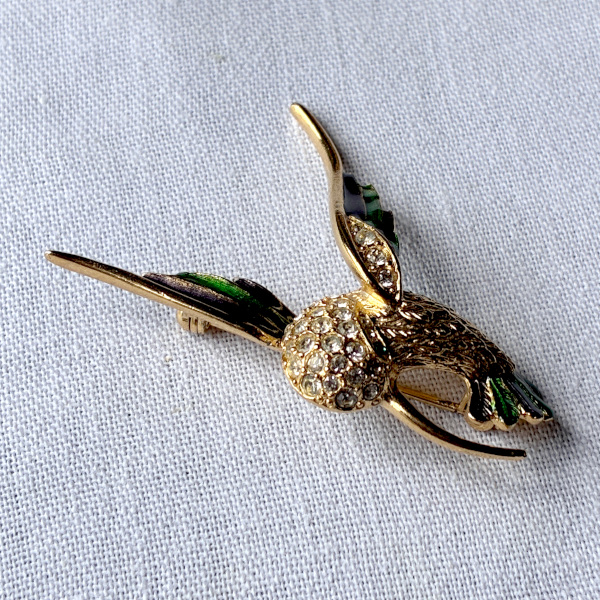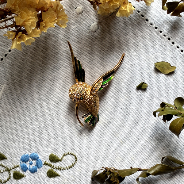 翼に光を、心に祝福を──英国ヴィンテージ ハチドリエナメル&クリスタルブローチ [EW0735]