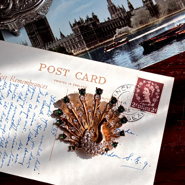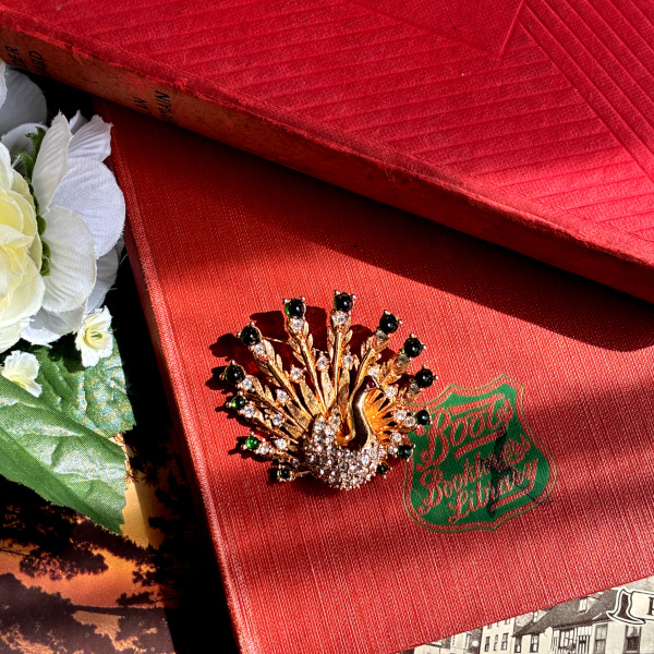 こちらは、英国ヴィンテージの孔雀モチーフブローチです。