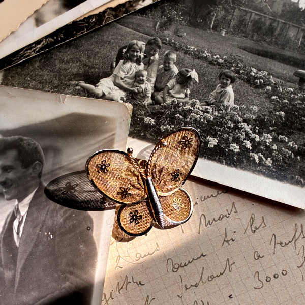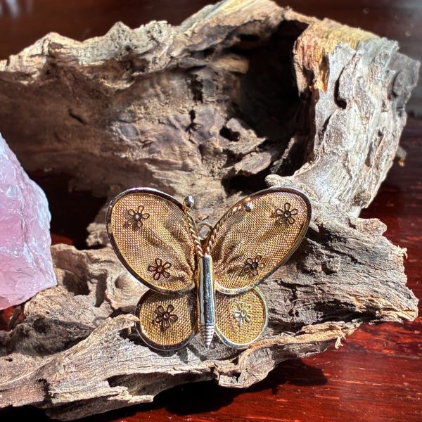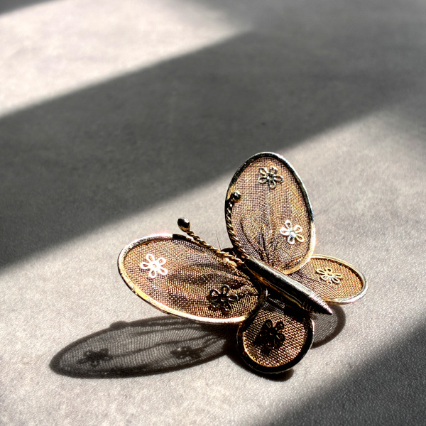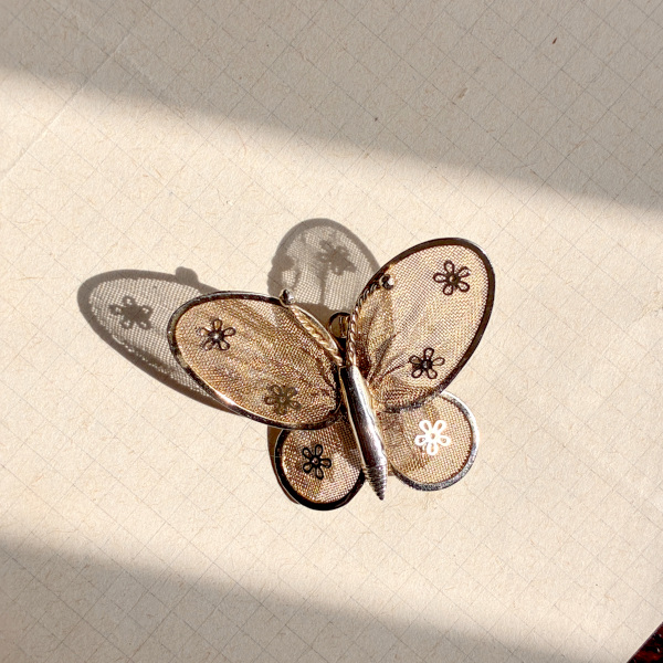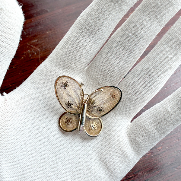 - > 英国ヴィンテージブローチ&ネックレス 2WAY|幸せを運ぶ小さな羽音 蝶モチーフジュエリー