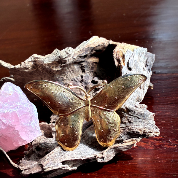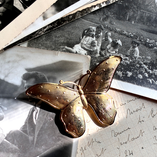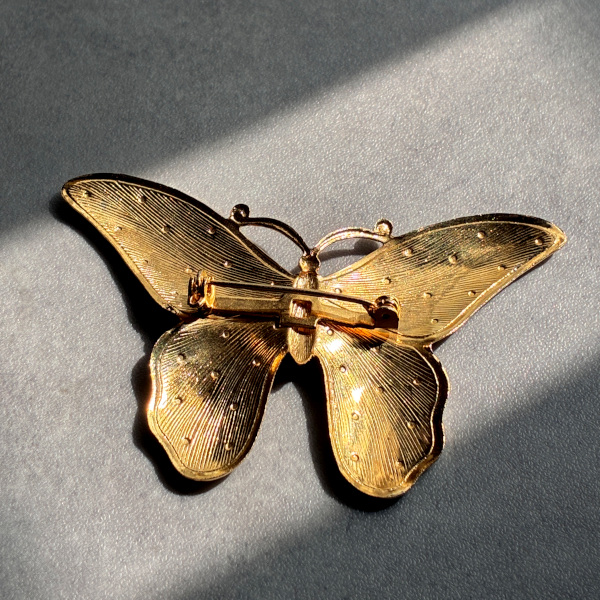 胸元で優雅に舞うゴールドの蝶――英国ヴィンテージブローチの魅力は、