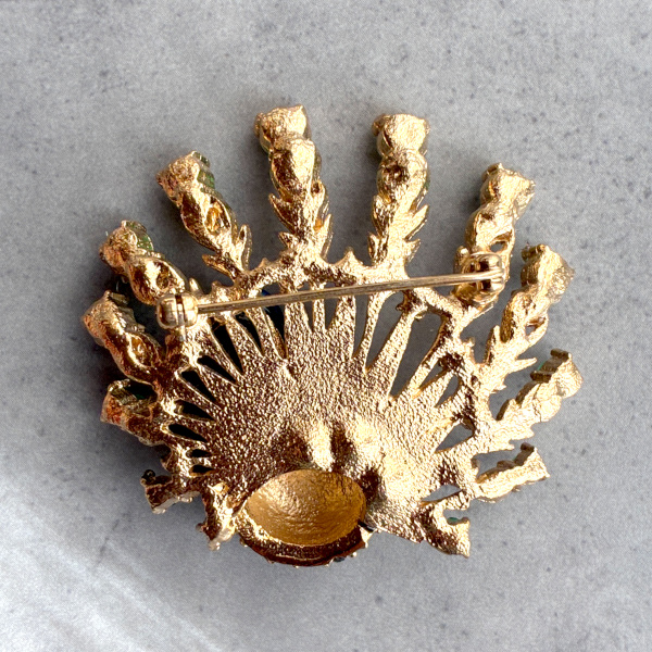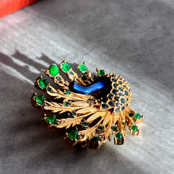 - > 英国ヴィンテージブローチ|光を纏い、誇りを広げる孔雀のブローチ