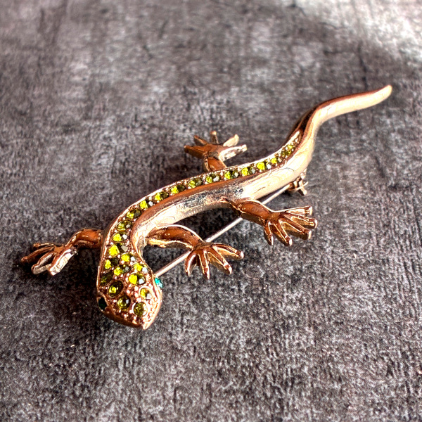 - > 英国ヴィンテージ 光を走る翡翠色のトカゲブローチ
