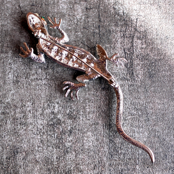 - > 英国ヴィンテージブローチ きらめくクリスタルと緑の瞳のトカゲブローチ