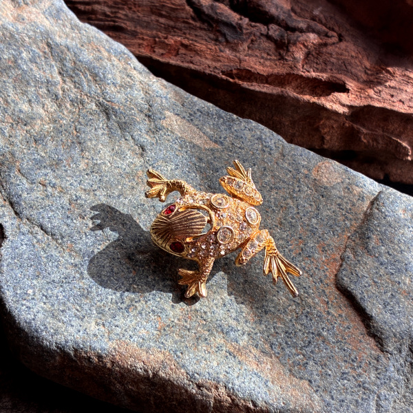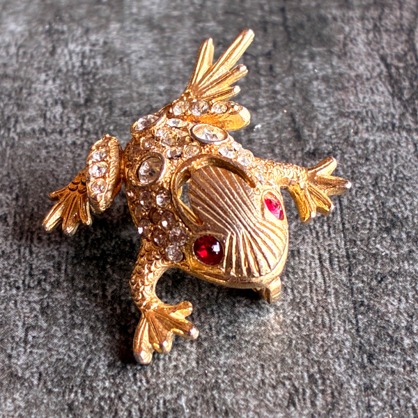 幸運を呼ぶ、英国ヴィンテージ カエルのクリスタルブローチ [EW0850]