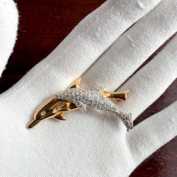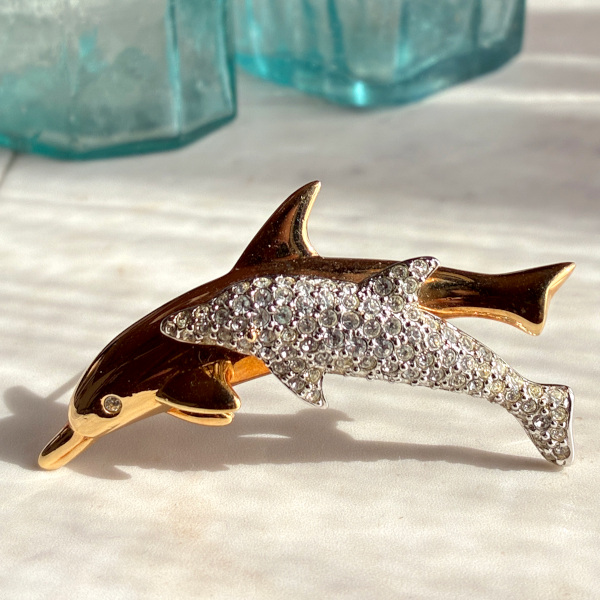 英国ヴィンテージ*寄り添う2匹のイルカが運ぶ光と幸運のブローチ [EW0857]