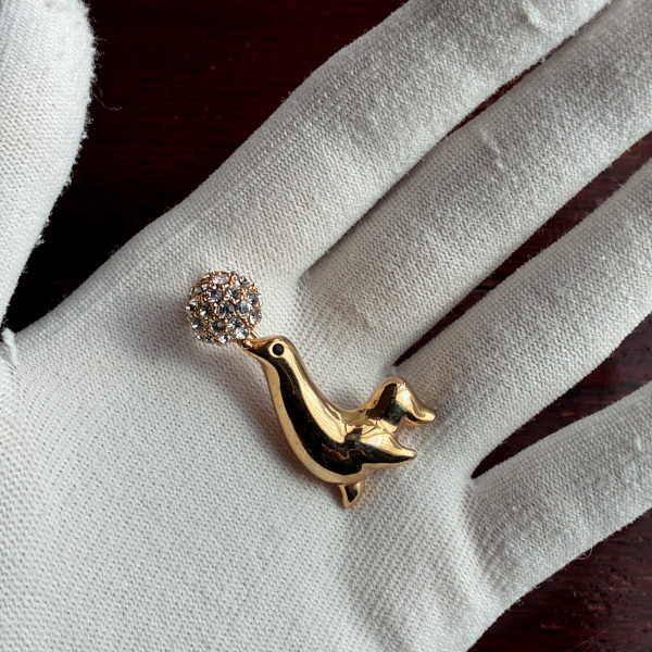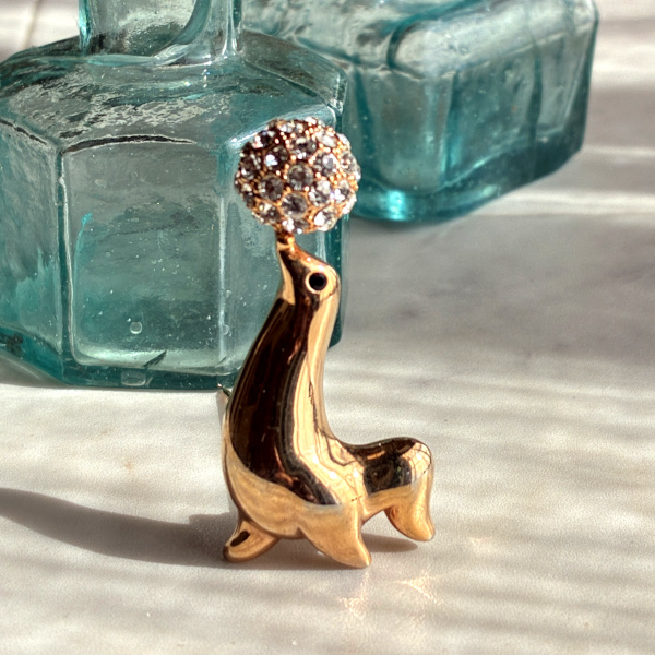 - > 英国ヴィンテージ|幸運を運ぶあざらしのクリスタルブローチ