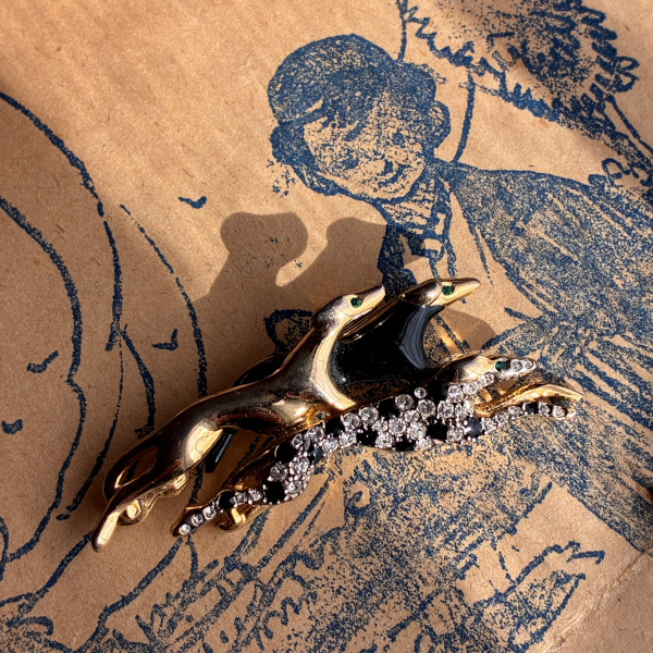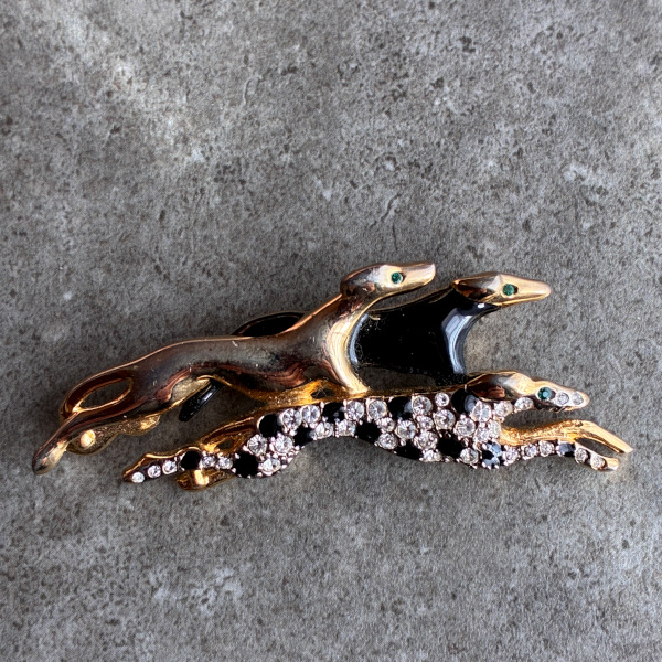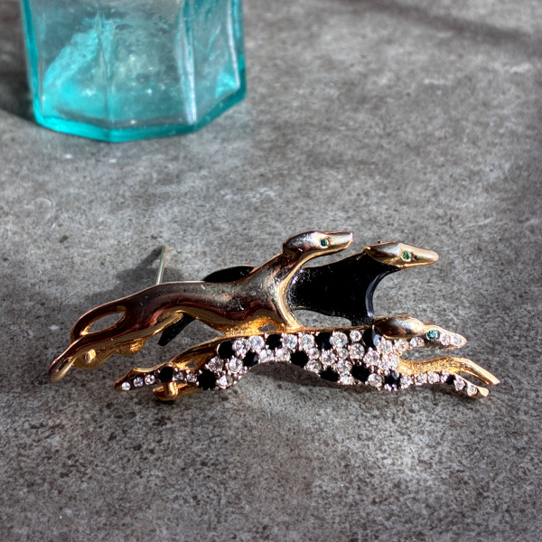 - > 英国 ヴィンテージ ブローチ幸運を連れて走る ヴィンテージ三匹犬ブローチ