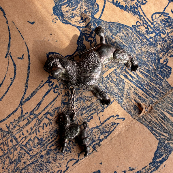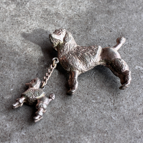 - > 1920年頃 英国アンティークプードルの親子ブローチ
